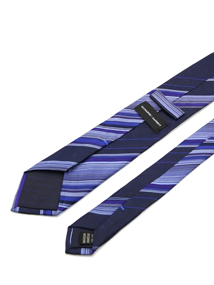【KATHARINEEHAMNETT-キャサリン・イー・ハムネット-】ネクタイレギュラーシルク100%サテンストライプ