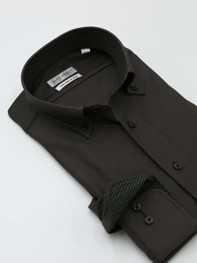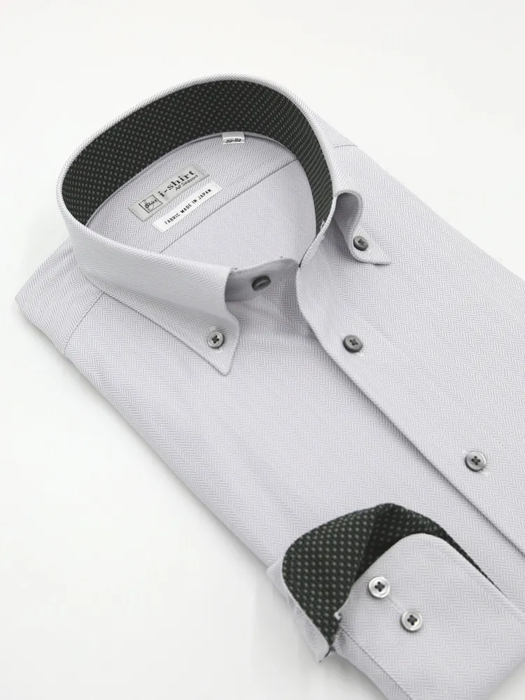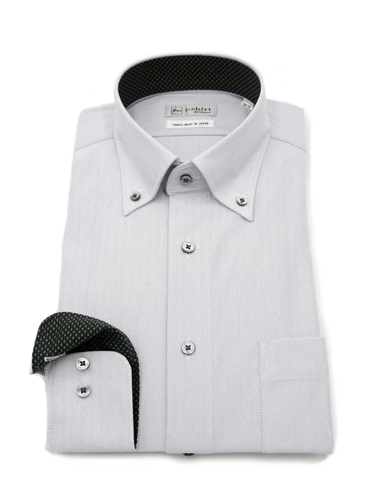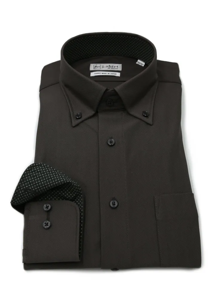 【形態安定】アイシャツ長袖ワイシャツボタンダウン織柄無地i-shirt通年