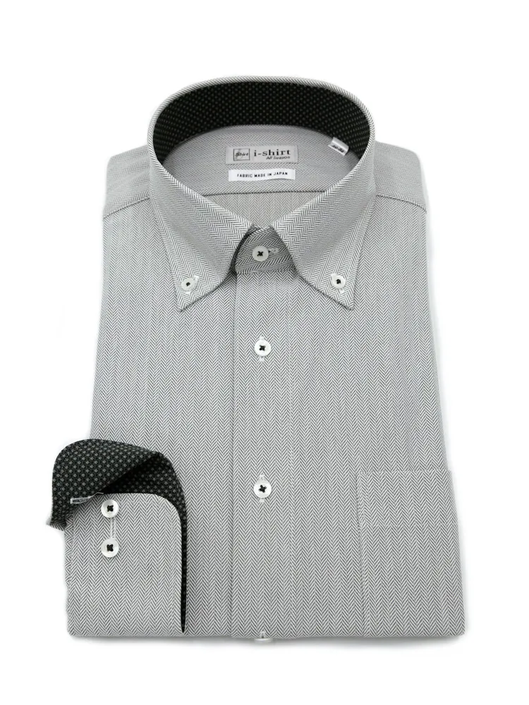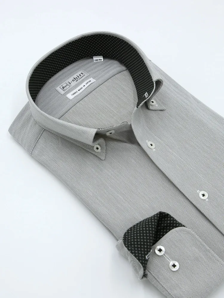 【完全ノーアイロン】長袖アイシャツセミワイド【トップヘザーシリーズ】ヘリンボン調ワイシャツi-shirt通年
