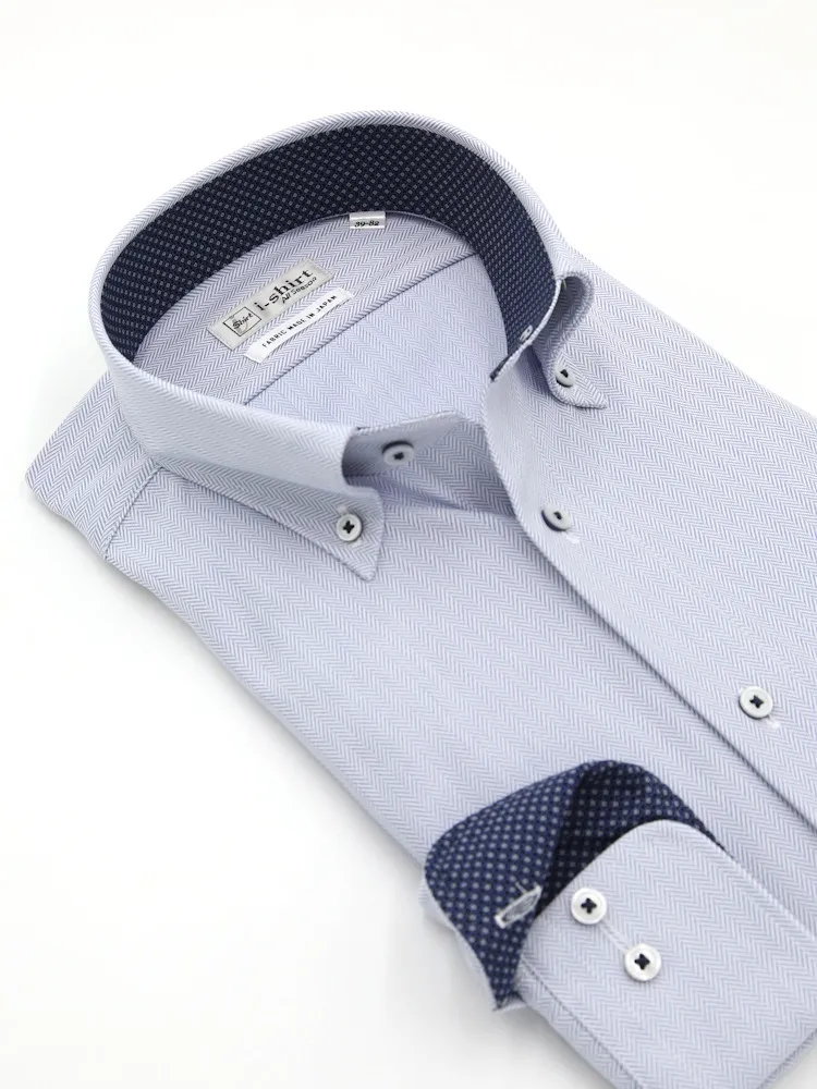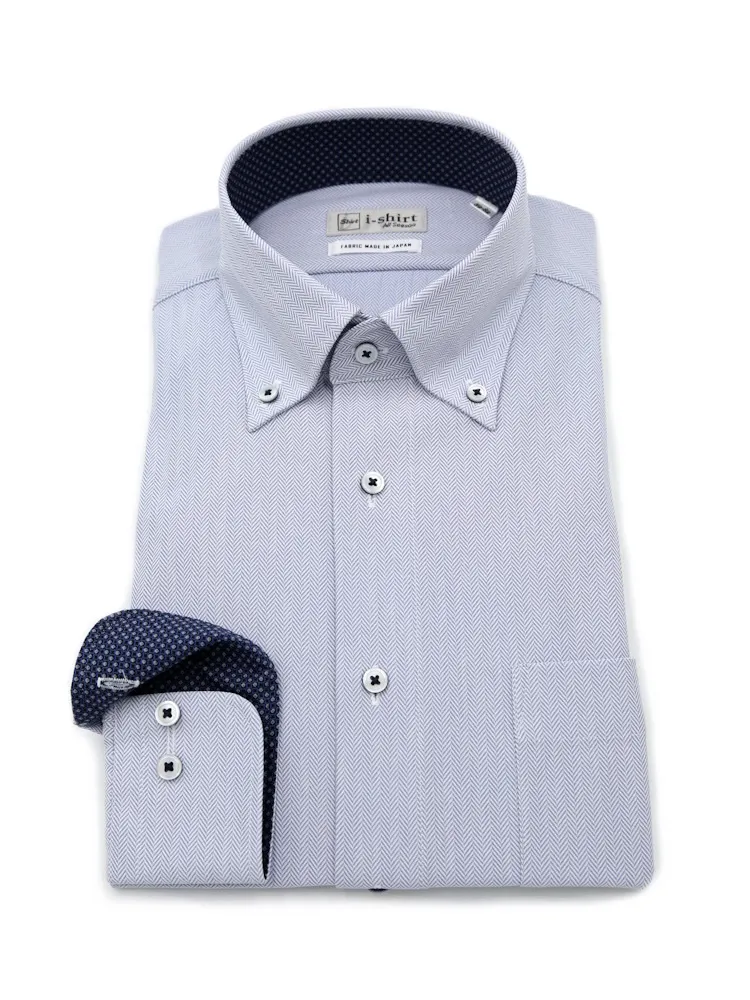 【完全ノーアイロン】長袖 アイシャツ ボタンダウン【トップヘザーシリーズ】ヘリンボン調 ワイシャツ i-shirt 通年(S.ブルー)