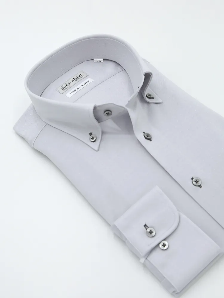 【完全ノーアイロン】長袖アイシャツボタンダウン吸水速乾ストレッチダイヤ織柄無地ワイシャツi-shirt通年