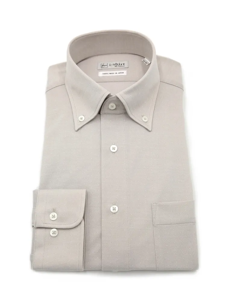 【形態安定】アイシャツ長袖ワイシャツボタンダウン織柄無地i-shirt通年