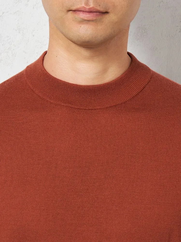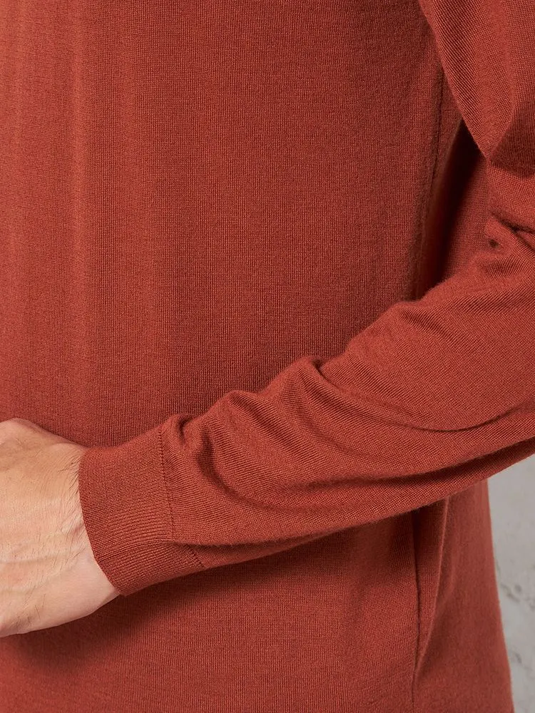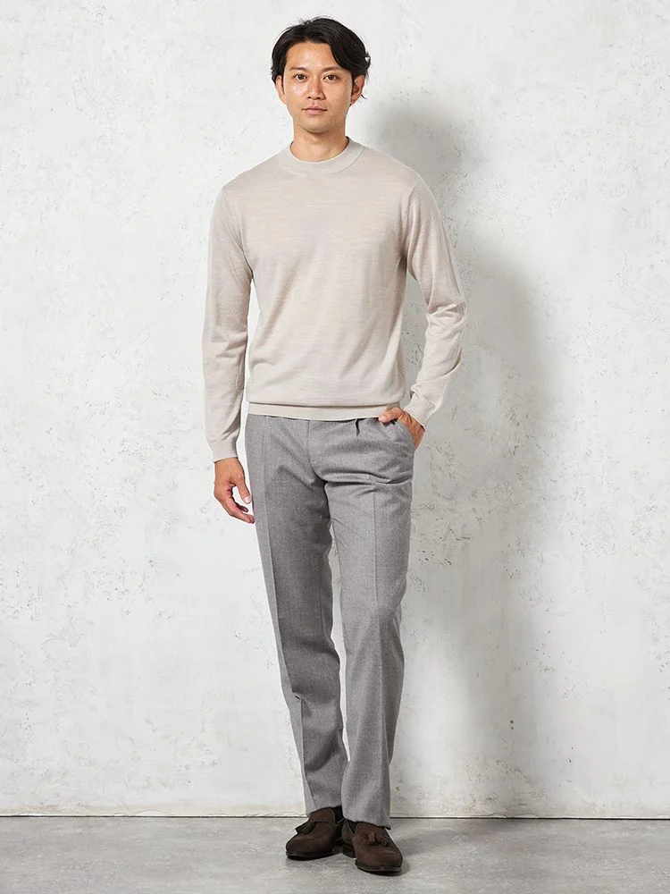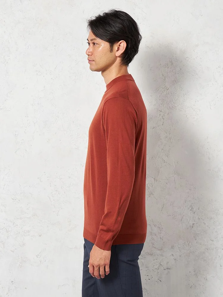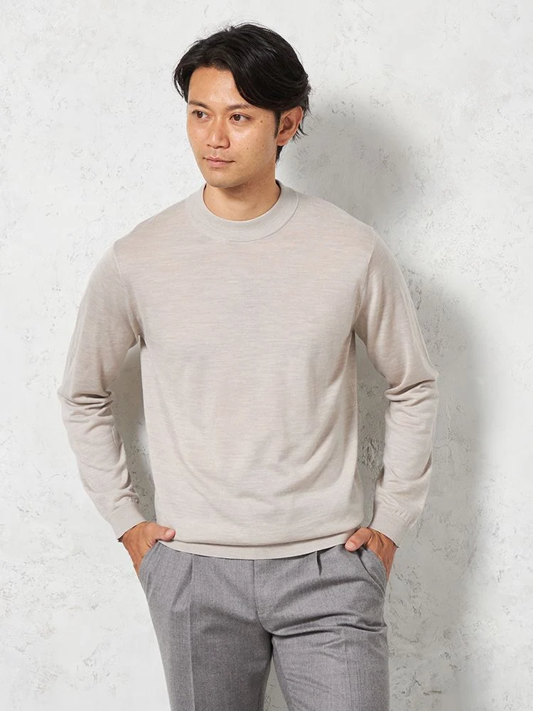 美しい光沢感となめらかな肌ざわりが魅力のメリノウールを使用した長袖ニット。