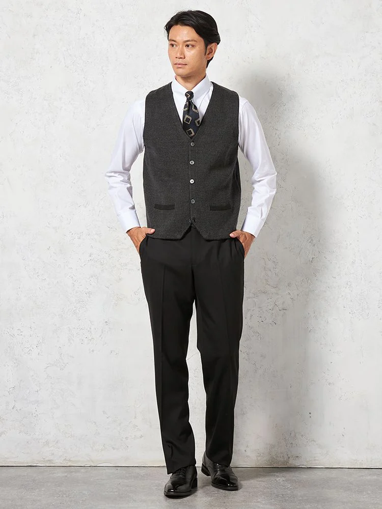 【制電&抗ピリング】鹿の子ニットジレカジュアルインナー無地リッケンバッカー秋冬
