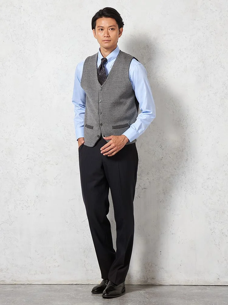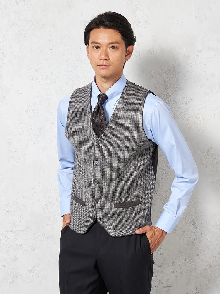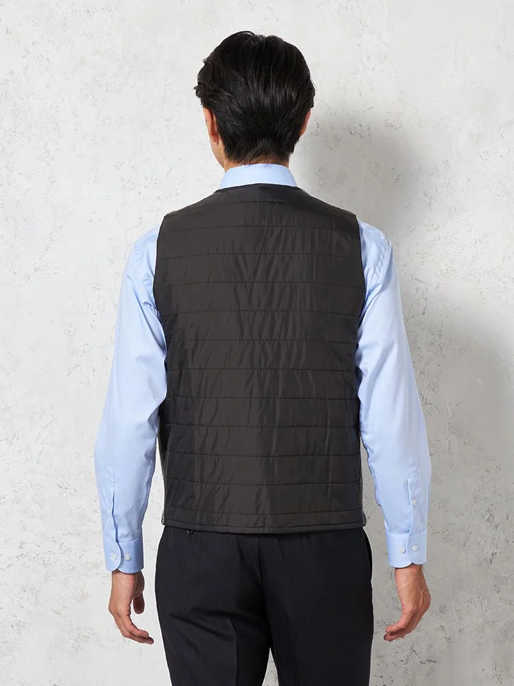 【制電&抗ピリング】千鳥柄 後身キルトベスト カジュアルインナー 千鳥格子 リッケンバッカー 秋冬(ブラック)