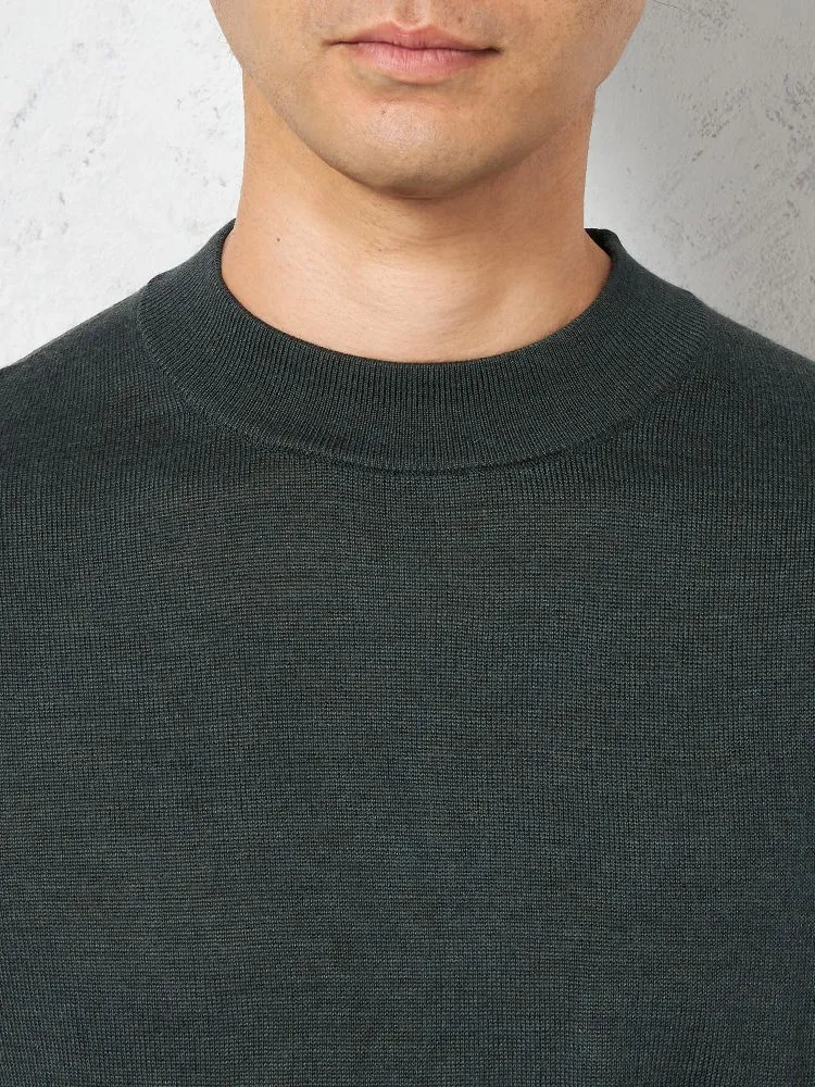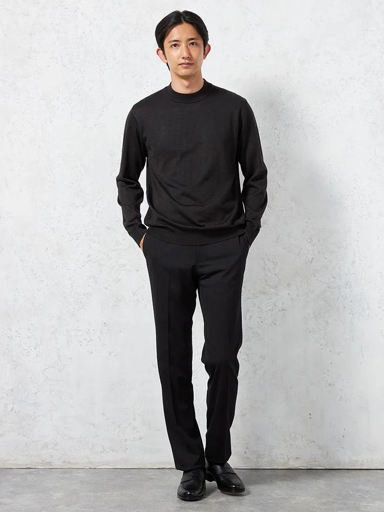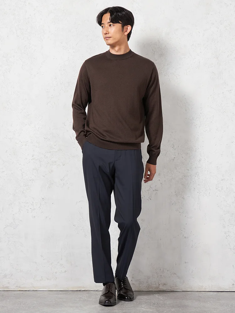 ベーシックなデザインと合わせやすいカラーが嬉しい長袖モックネックニットです。