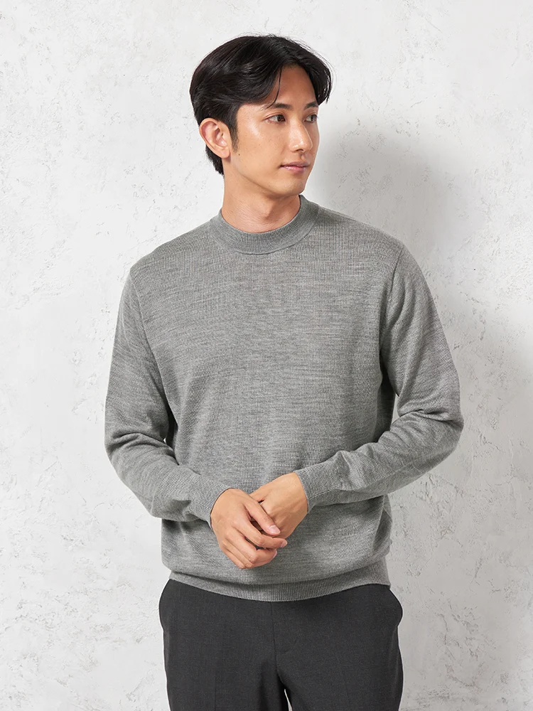 【制電&抗ピリング】天竺 モックネックセーター カジュアルインナー 無地 リッケンバッカー 秋冬(M.グレー)