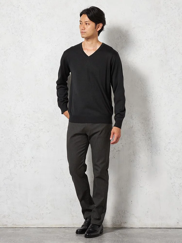 【制電&抗ピリング】天竺 Vネックセーター カジュアルインナー 無地 リッケンバッカー 秋冬(ブラック)
