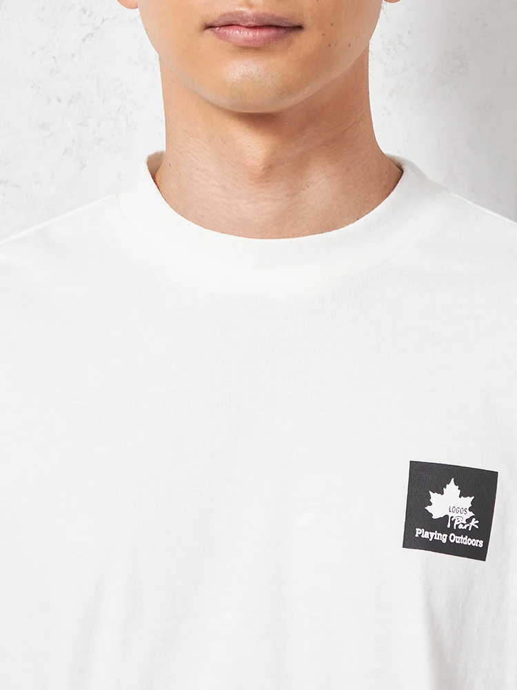 胸元に添えたロゴモチーフが、アウトドア気分を高めるアクセントになっています。