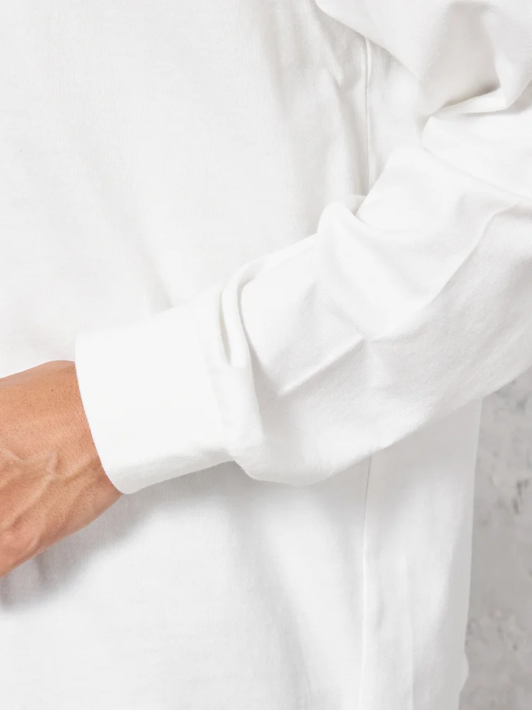 コットン混の肌当たりの良い素材を用いた長袖Tシャツ。