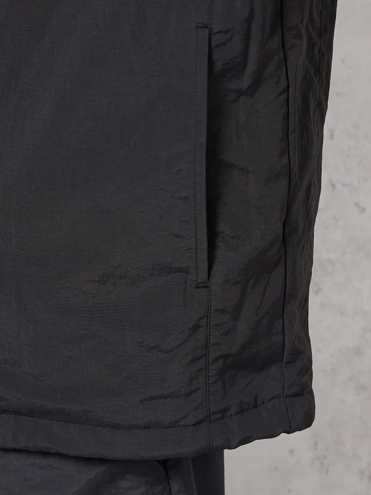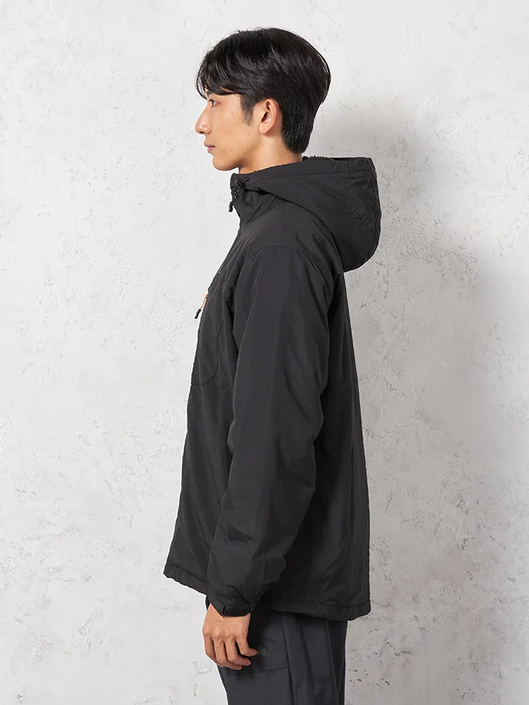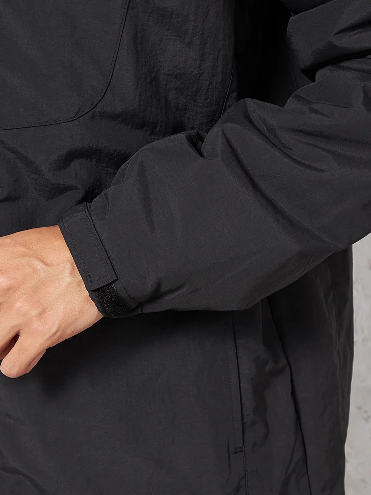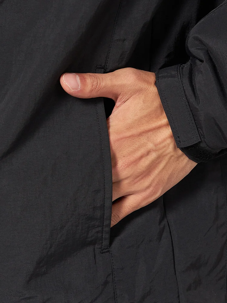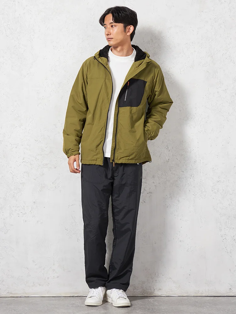 撥水加工を施した表面はタフなナイロン素材を使用。軽いながらも暖かな着心地を味わえます。