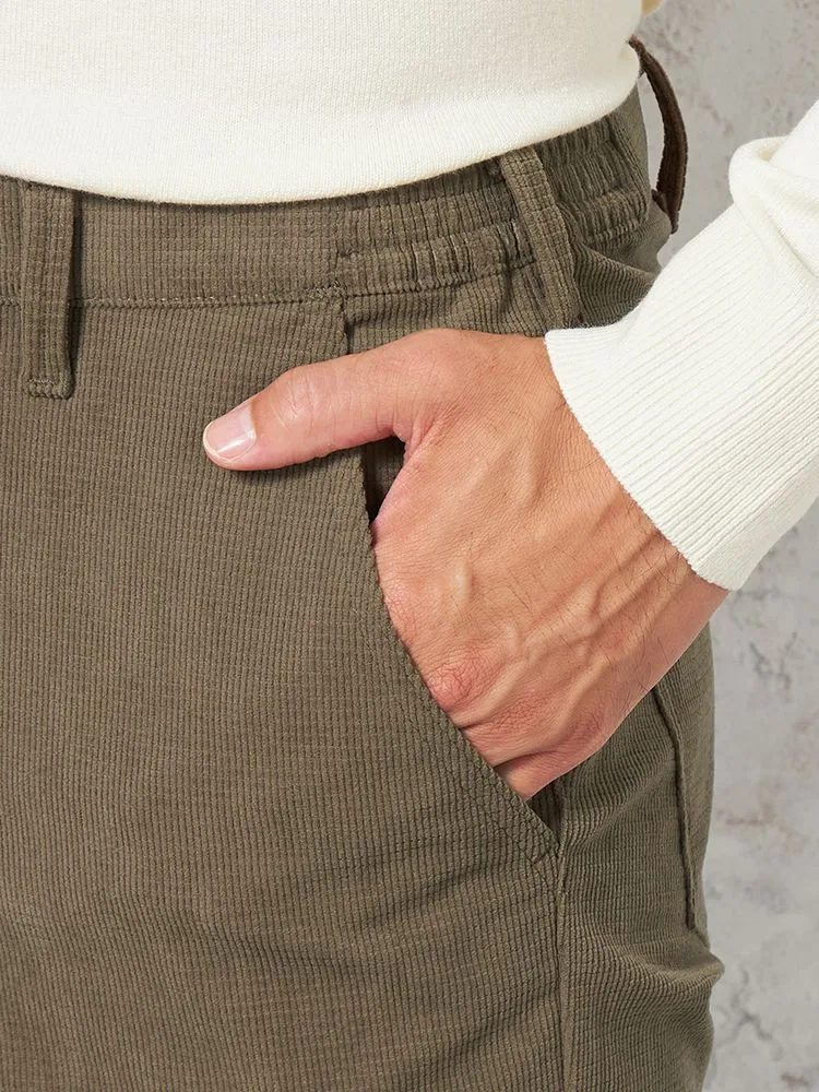 【EDWINデニスラ】キャラメルコールパンツ【セットアップ商品有】軽量 ストレッチ 無地 秋冬(カーキー)