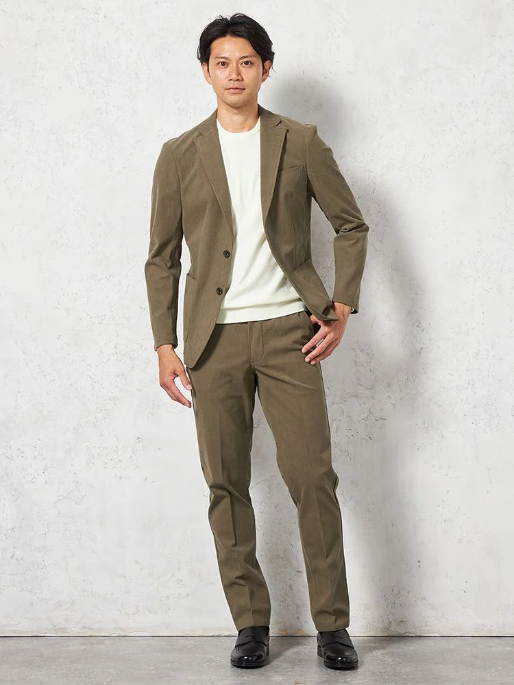 ニットコーデュロイという特殊な素材を開発。軽量で360度伸縮性があり快適な着心地。