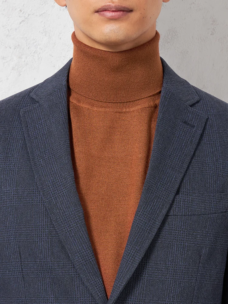 ストレッチ性のあるニットデニム素材にプリントを施しグレンチェック柄を表現したテーラードジャケット。