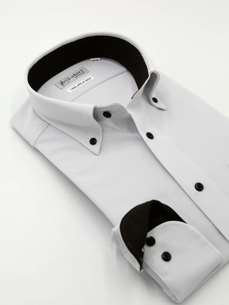 【形態安定】アイシャツ長袖ワイシャツボタンダウン織柄無地i-shirt通年