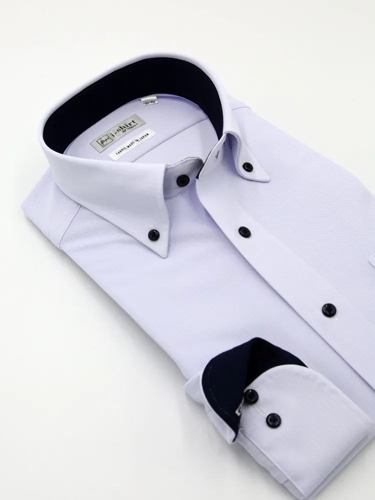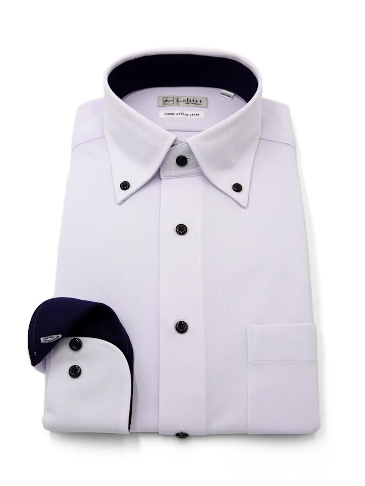 【完全ノーアイロン】長袖 アイシャツ ボタンダウン へリンボン ストレッチ 吸汗速乾 ワイシャツ i-shirt 通年(ラベンダー)