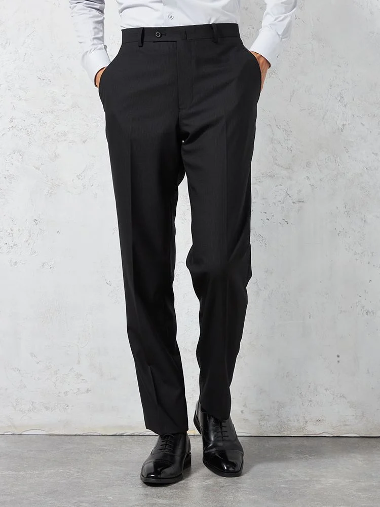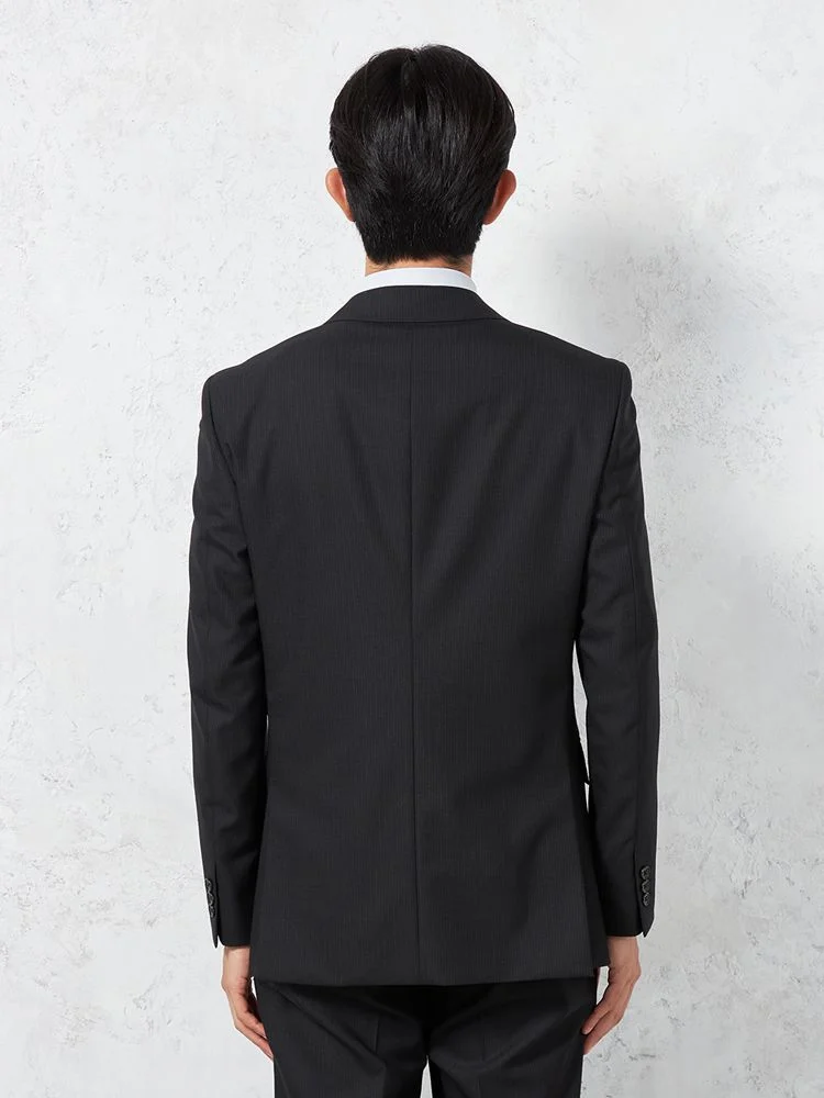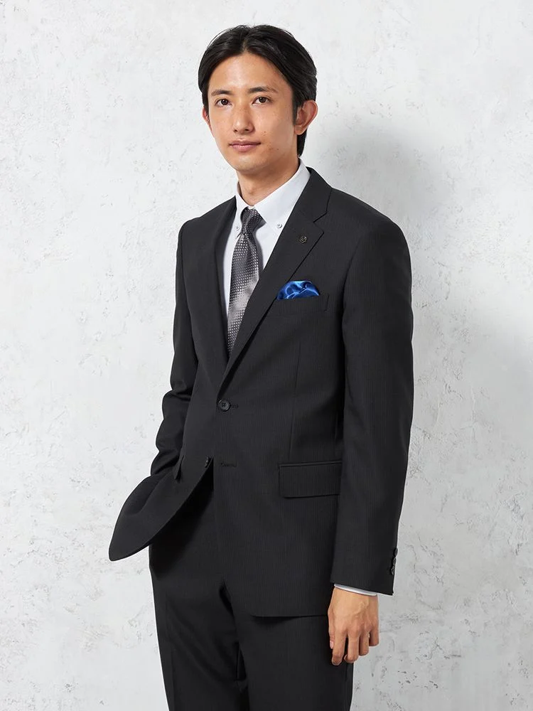 スマートな細身シルエットで、モダンなビジネスルックを叶えた1着です。
