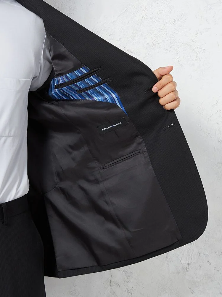 【KATHARINEEHAMNETT-キャサリン・イー・ハムネット-】スーツ2つボタン上下ウォッシャブルサスティナブルウールネイビー織柄無地秋冬