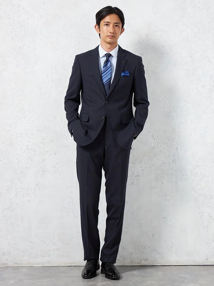 すっきりとしたシルエットで、都会的なスーツスタイルを叶えます。