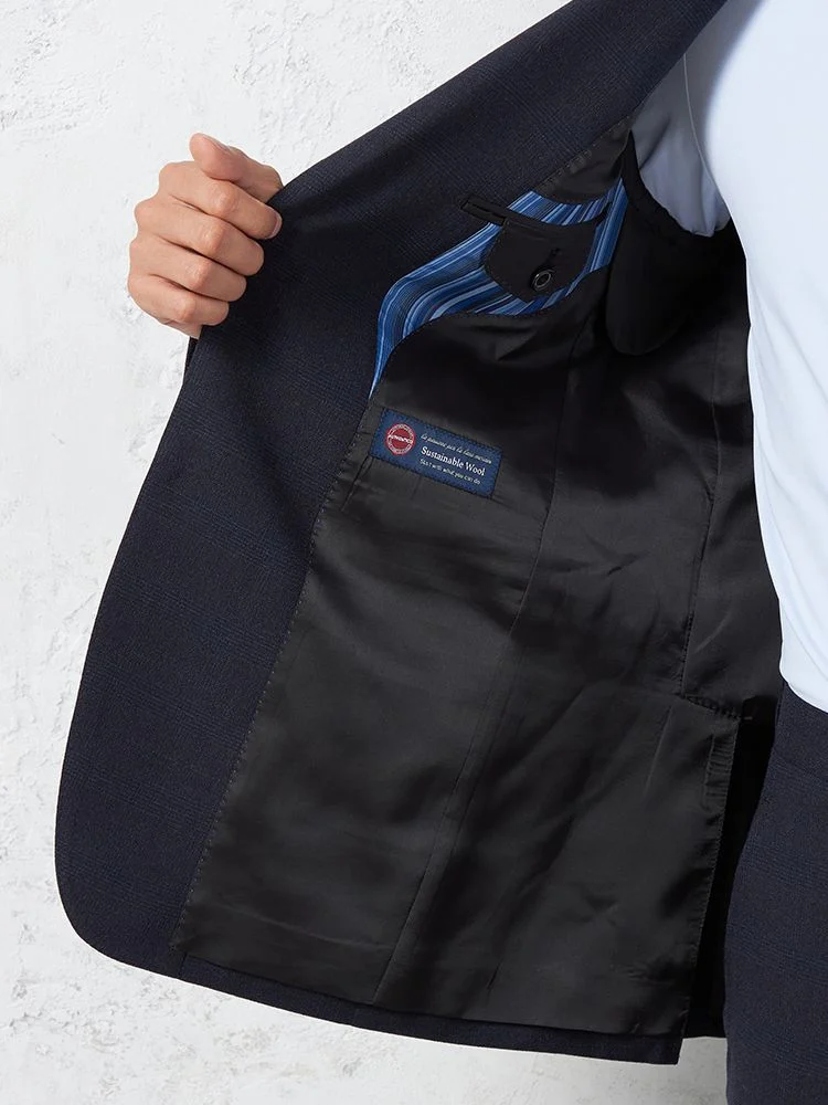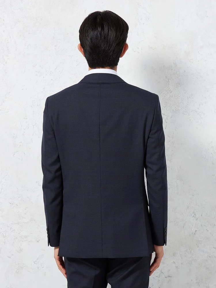 サスティナブルウール素材を使用し、環境にも配慮したツーピーススーツ。