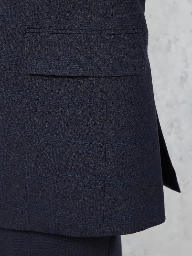 深みのあるネイビーを貴重としたグレンチェック柄は、柄物でも馴染みが良く、無地に近い感覚で取り入れやすくなっています。