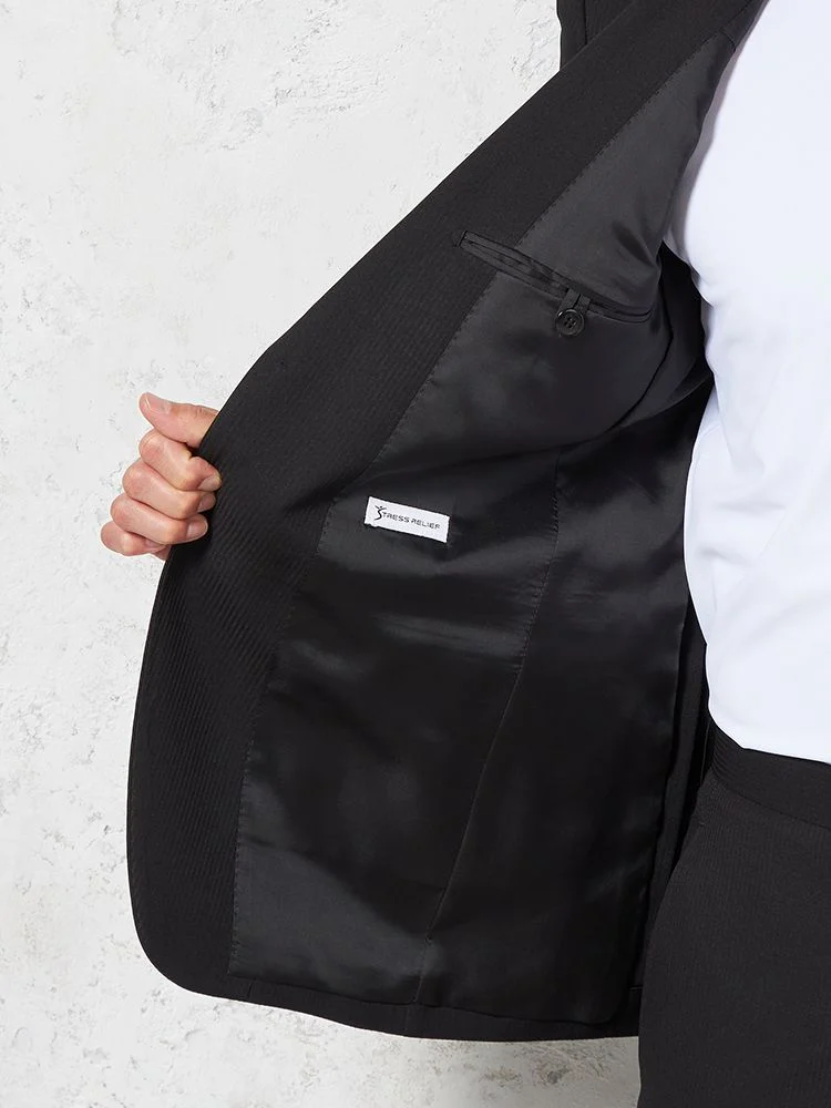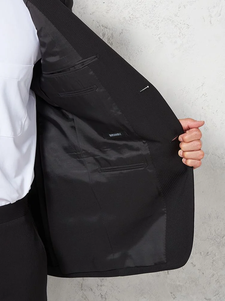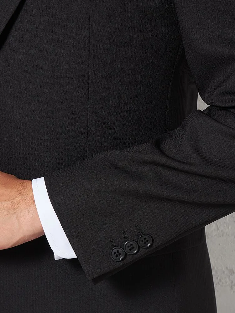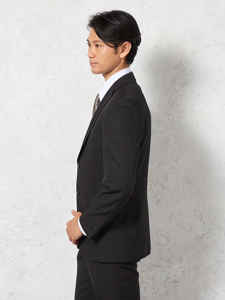 【即納】スーツ2つボタン【WEB限定】4WAYストレッチストライプブラック通年