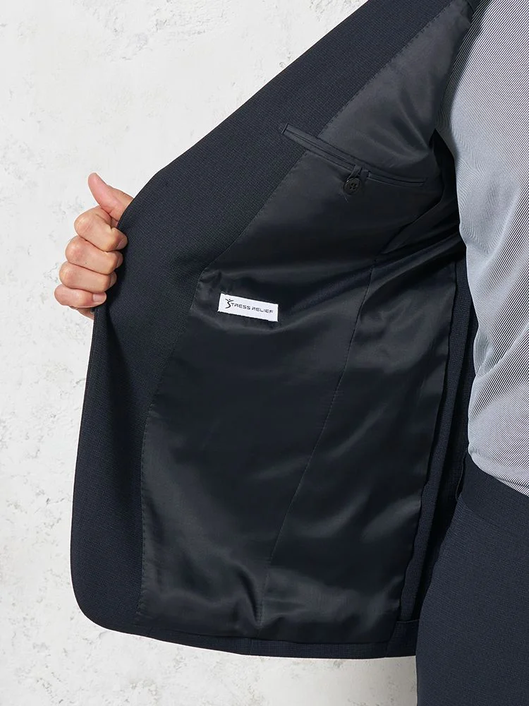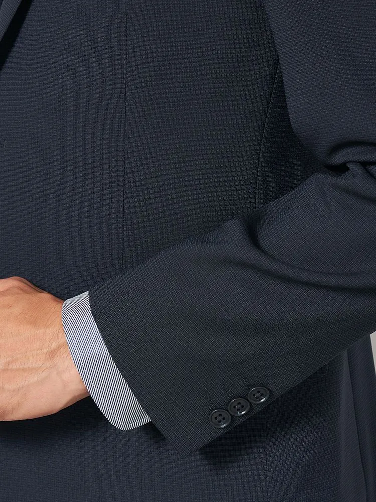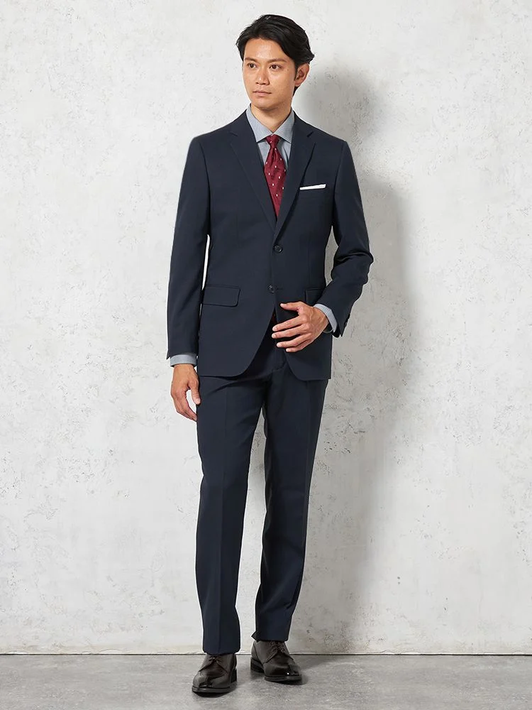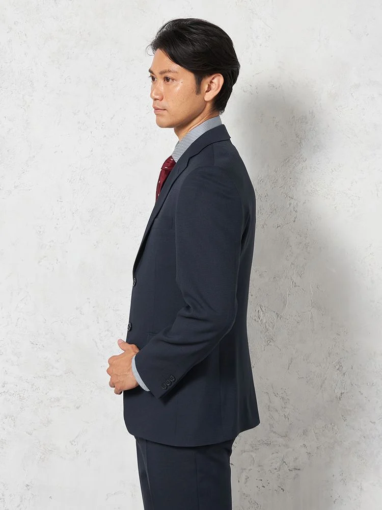【即納】スーツ 2つボタン【WEB限定】4WAYストレッチ 織柄 ネイビー 通年