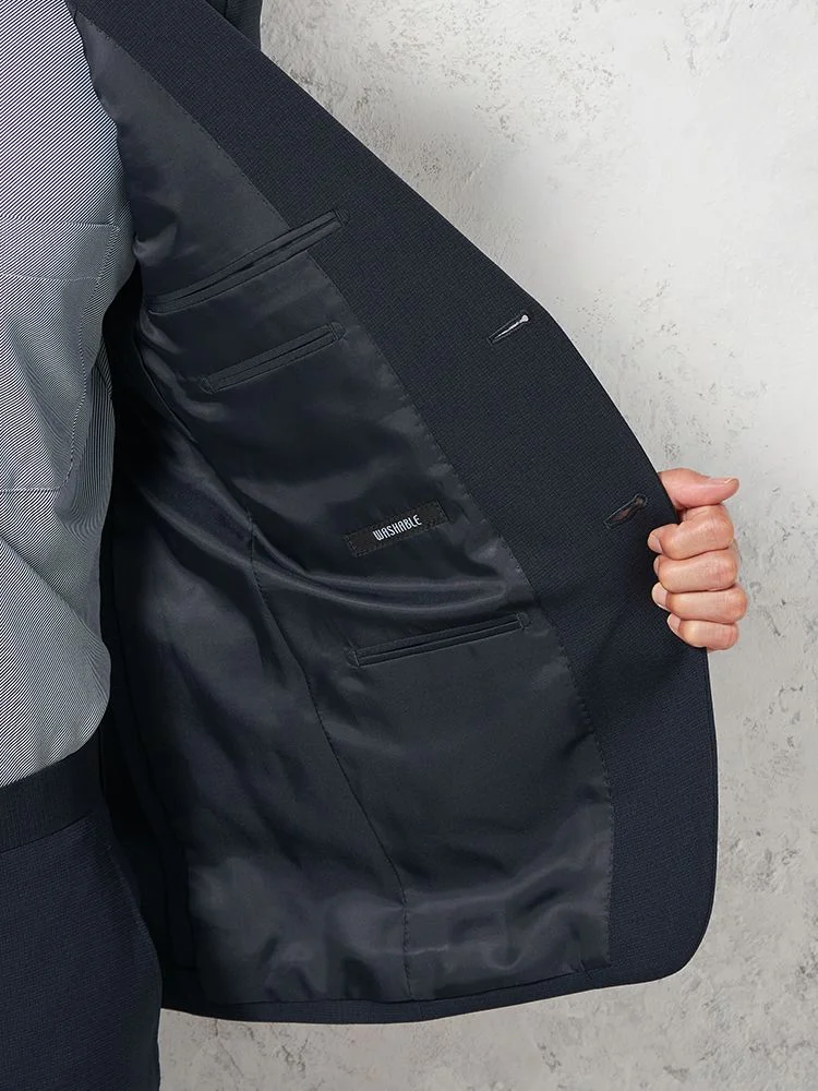【上下ウォッシャブル】スリーピーススーツ2つボタン脚長スリムネイビーシャドウストライプNERO通年