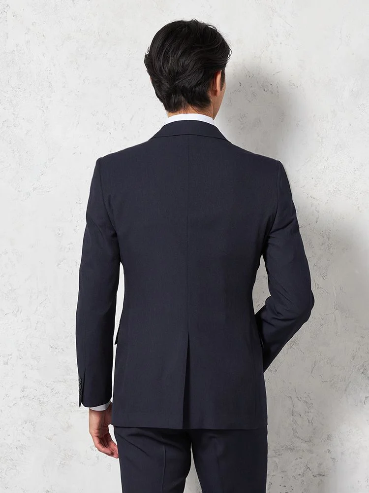 切り込みが1本のセンターベントデザインです。細身でスッキリとしたシルエットが特徴で、快適な着心地を提供します