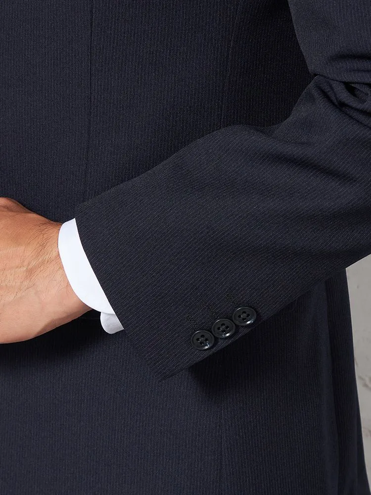 【即納】スーツ 2つボタン【WEB限定】4WAYストレッチ ストライプ ネイビー 通年