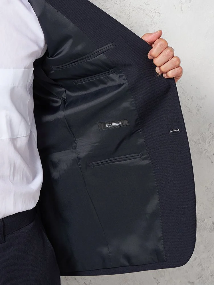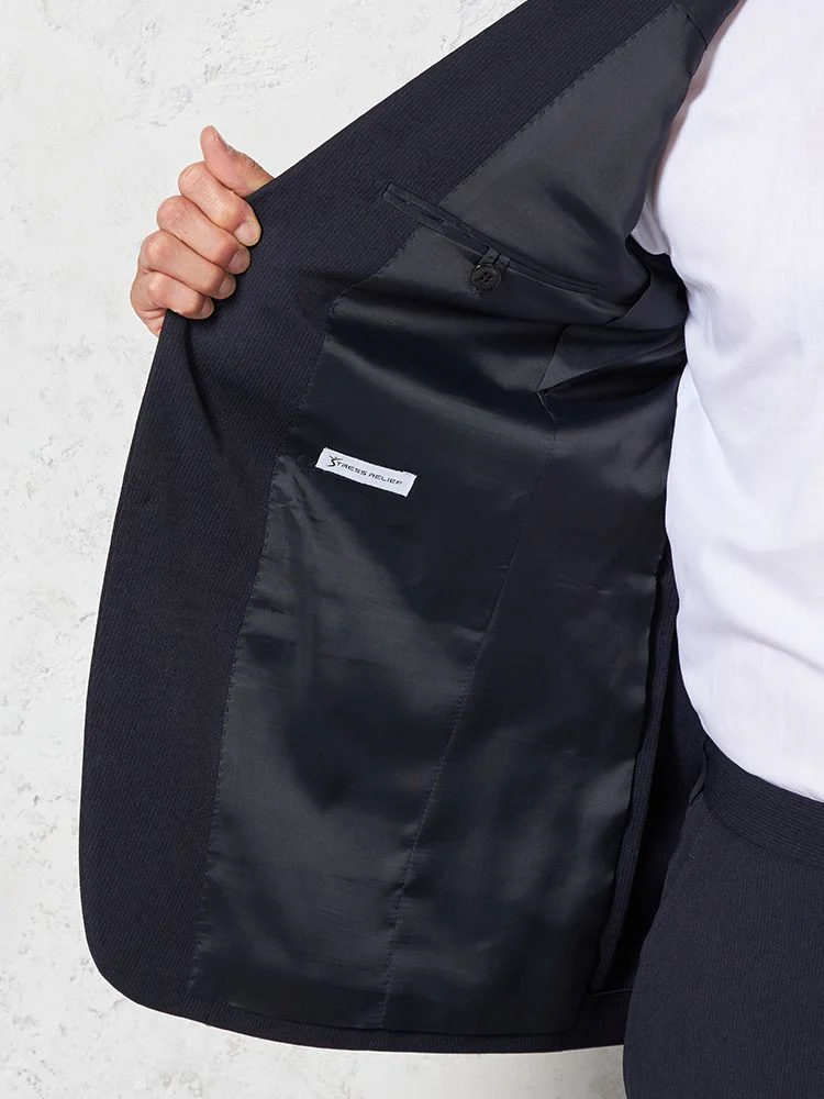【即納】スーツ2つボタン【WEB限定】4WAYストレッチシャドウストライプネイビー通年