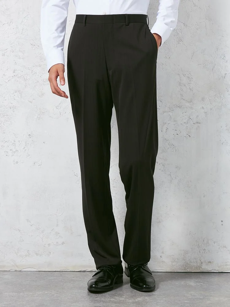 パンツの腰回りに生地の折り込みがなく、スッキリとしたシルエットを実現します。シンプルで洗練された印象を与え、すっきりとした着こなしが可能です。