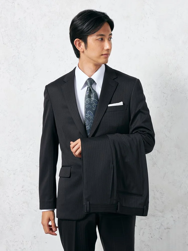 • 【形態安定&上下ウォッシャブル】スーツ 2つボタン ツーパンツ【i-Suit-アイスーツ-】 ブラック シャドウストライプ リッケンバッカー 通年 1278775492