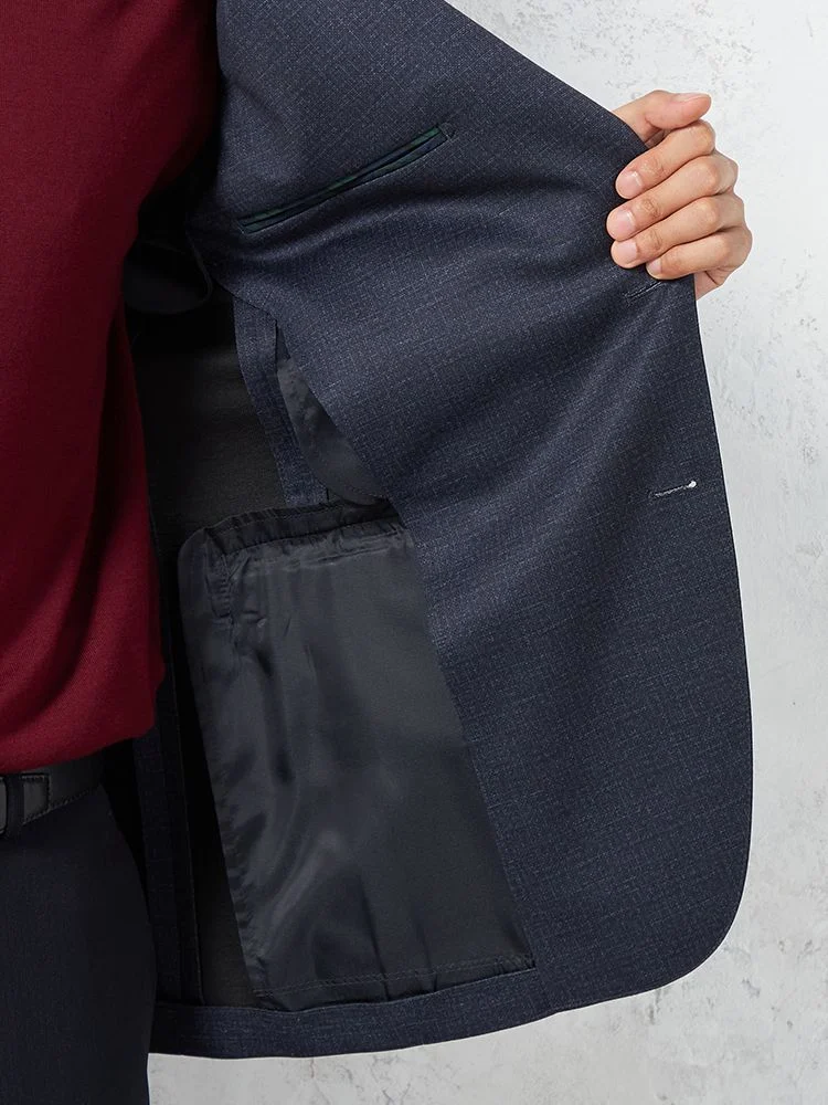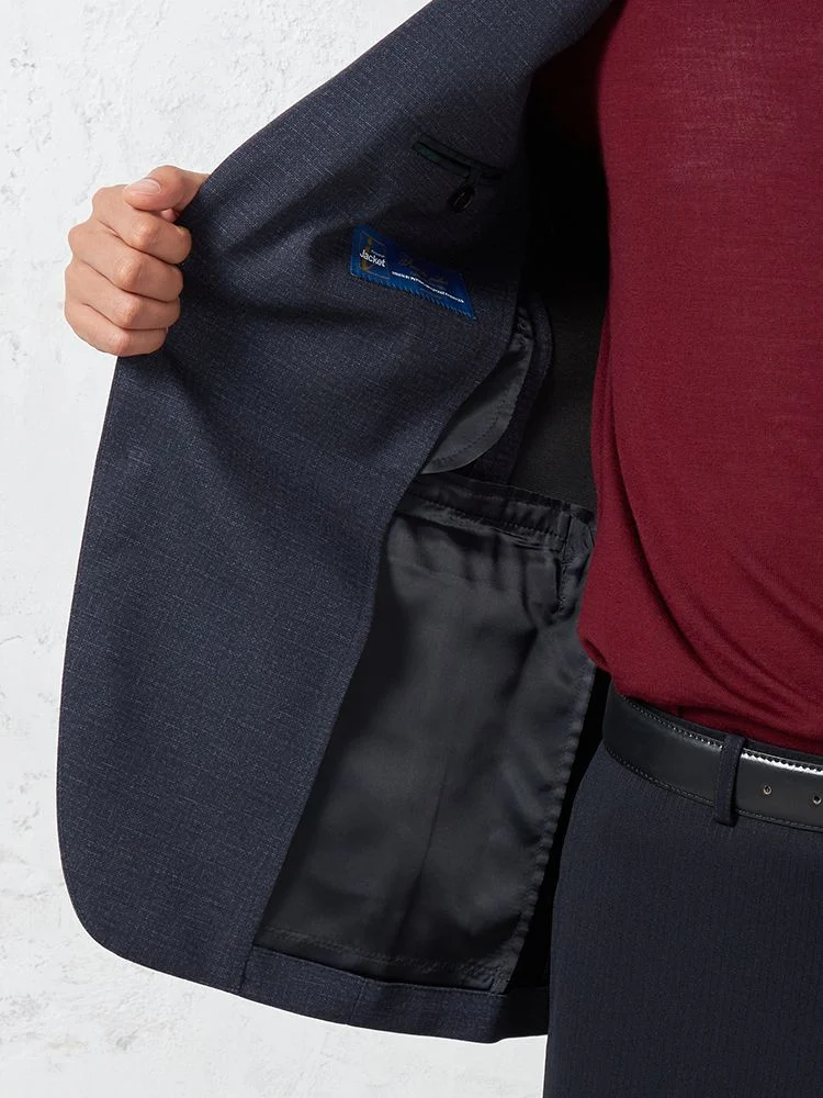 • 【軽量】プリントニット ジャケット 2つボタン ウォッシャブル ストレッチ ネイビー 小格子 【i-Jacket-アイジャケット-】 秋冬 1278775603