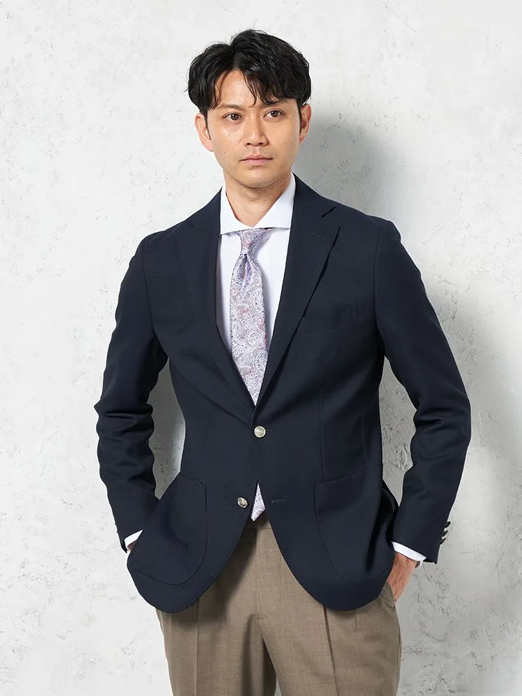 イタリアの老舗生地メーカー「アンジェリコ」社製生地による、本格紺ブレザー。