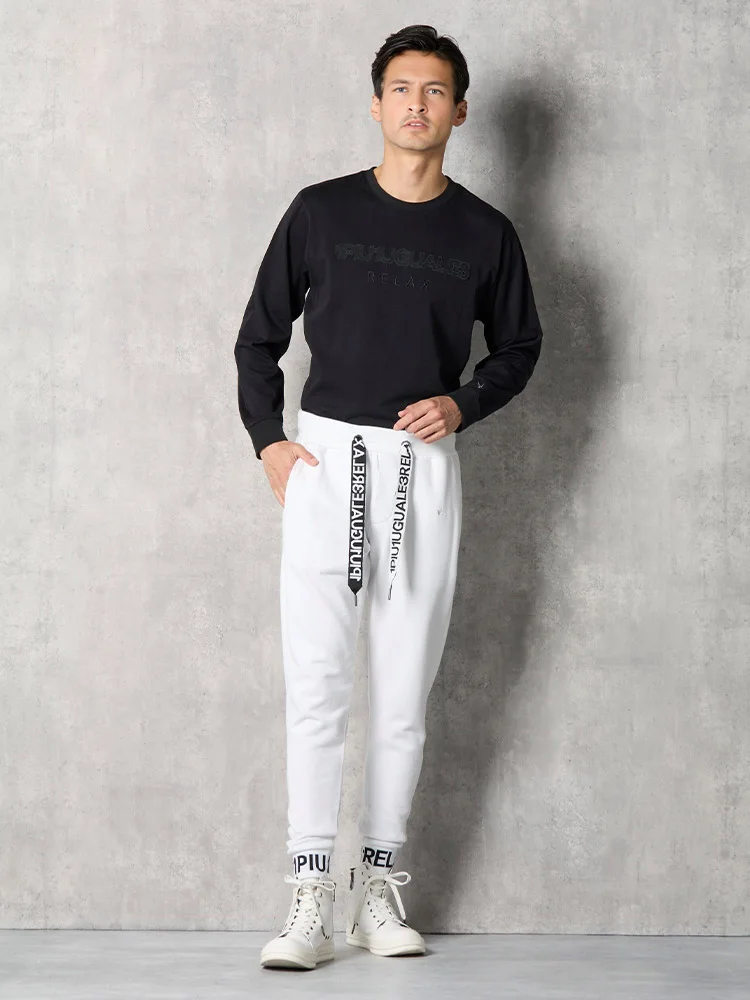 【1PIU1UGUALE3 RELAX】HEM LOGO ロングパンツ 通年(ウノ ピゥ ウノ ウグァーレ トレ)(ホワイト)