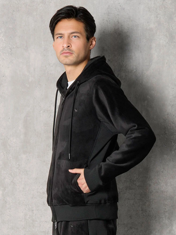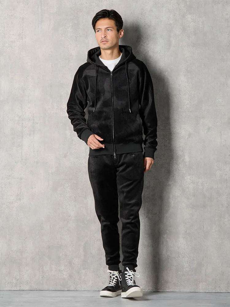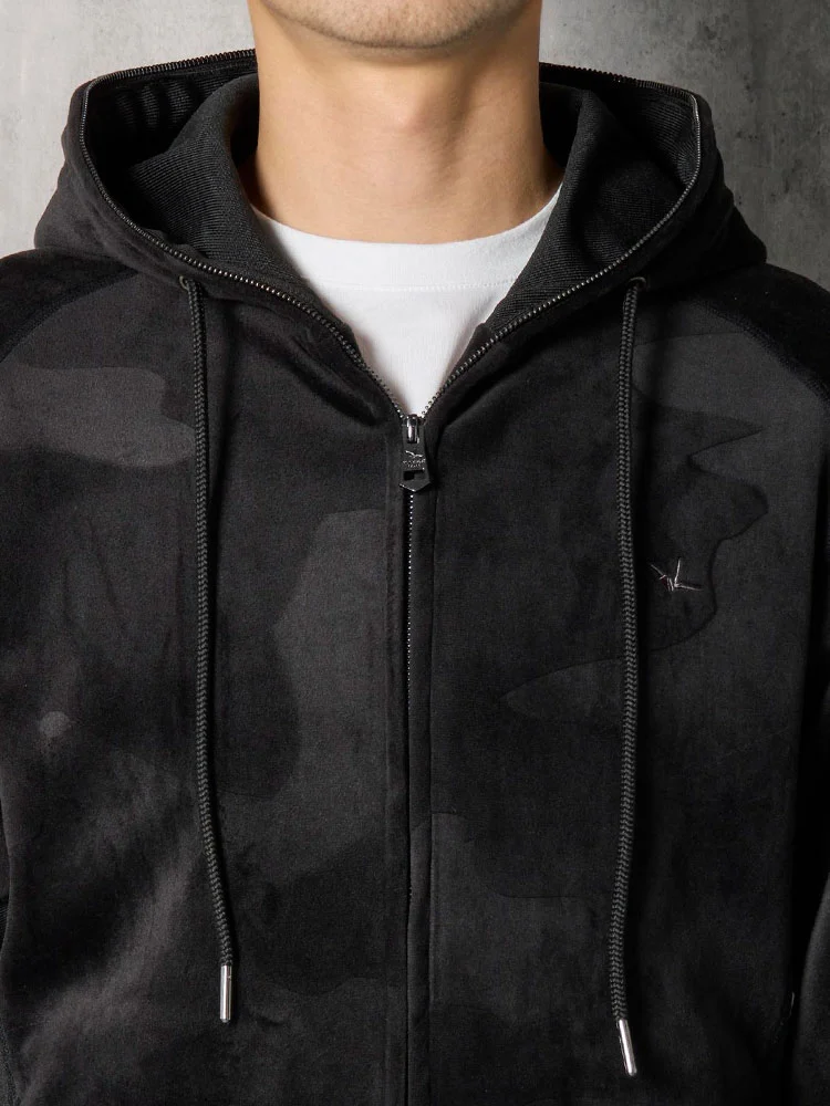 【1PIU1UGUALE3 RELAX】CAMO EMBOSSED ベロア フーディ 秋冬(ウノ ピゥ ウノ ウグァーレ トレ)