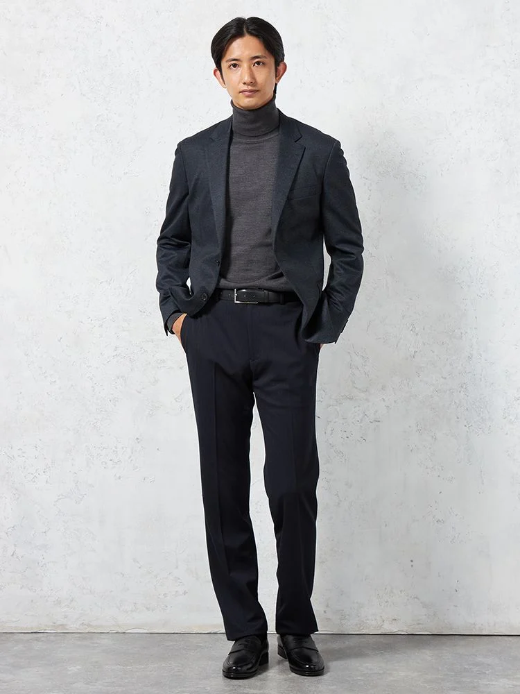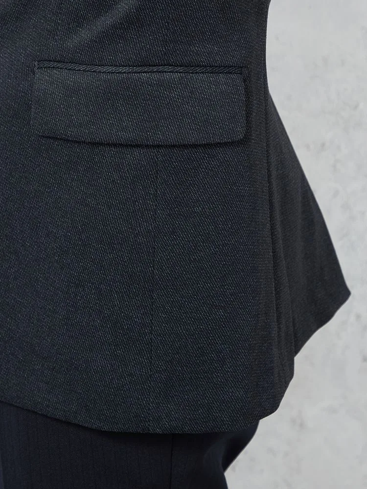 切り込みが1本のセンターベントデザインです。細身でスッキリとしたシルエットが特徴で、快適な着心地を提供します