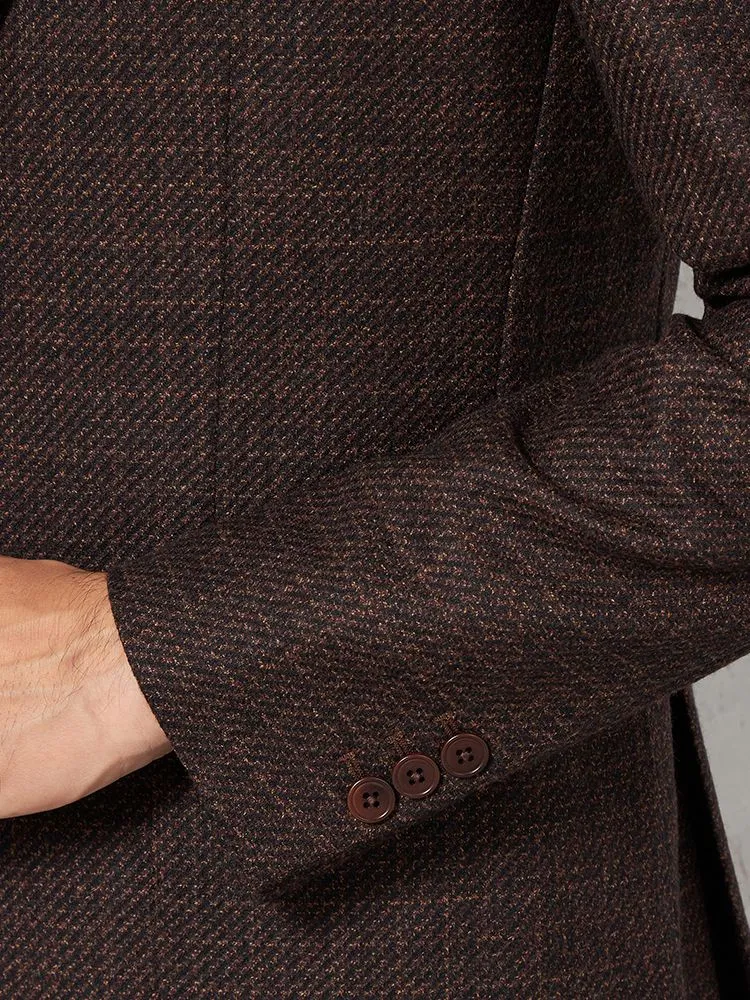 やや赤みのあるブラウンがエレガントな、チェック柄2つボタンデザイン。