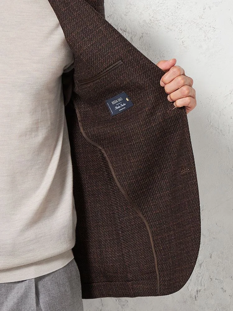 【ウール100%】ジャケット 2つボタン【REDA】イタリアインポート素材 軽量仕立て チェック ブラウン RUCKEN BACCHAR 秋冬