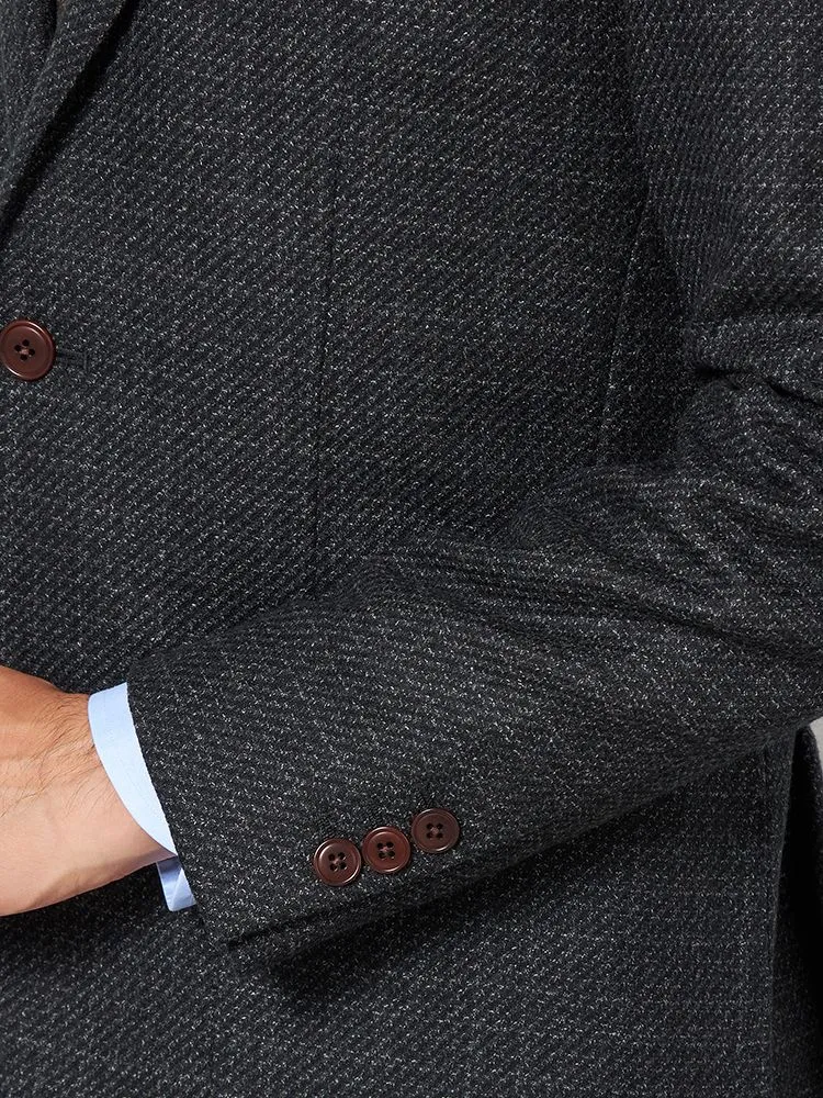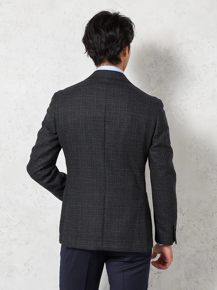 落ち着いたチャコールグレーのチェック柄2つボタンデザイン。