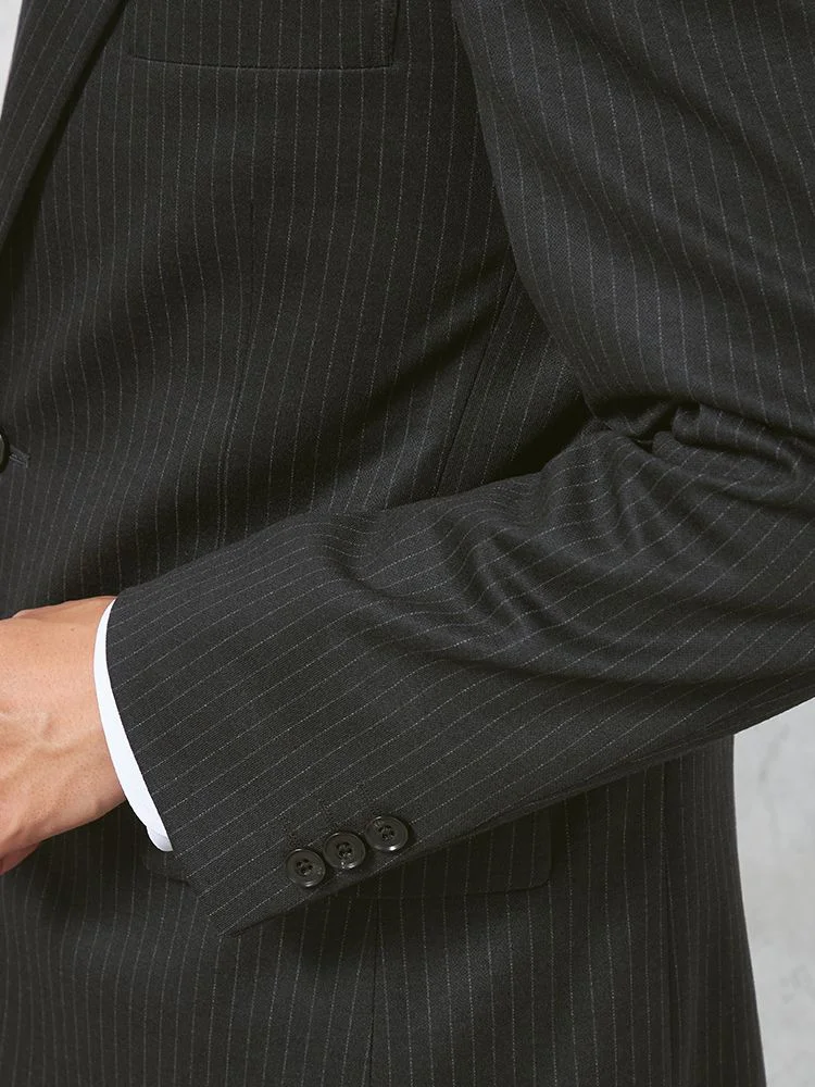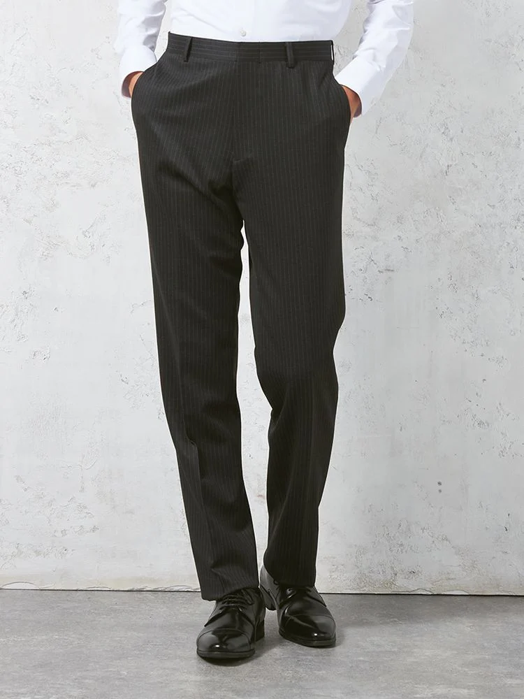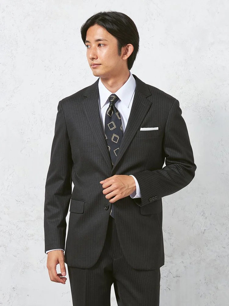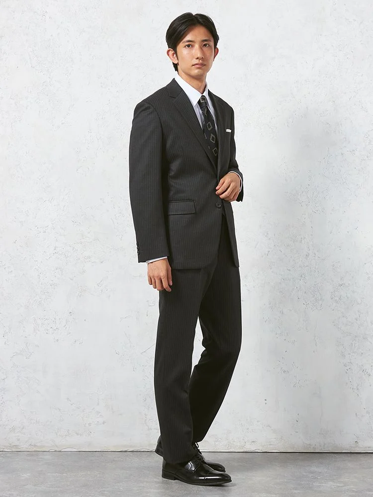【ウォッシャブル】スリーピーススーツ2つボタンウール混ノータックストライプnero