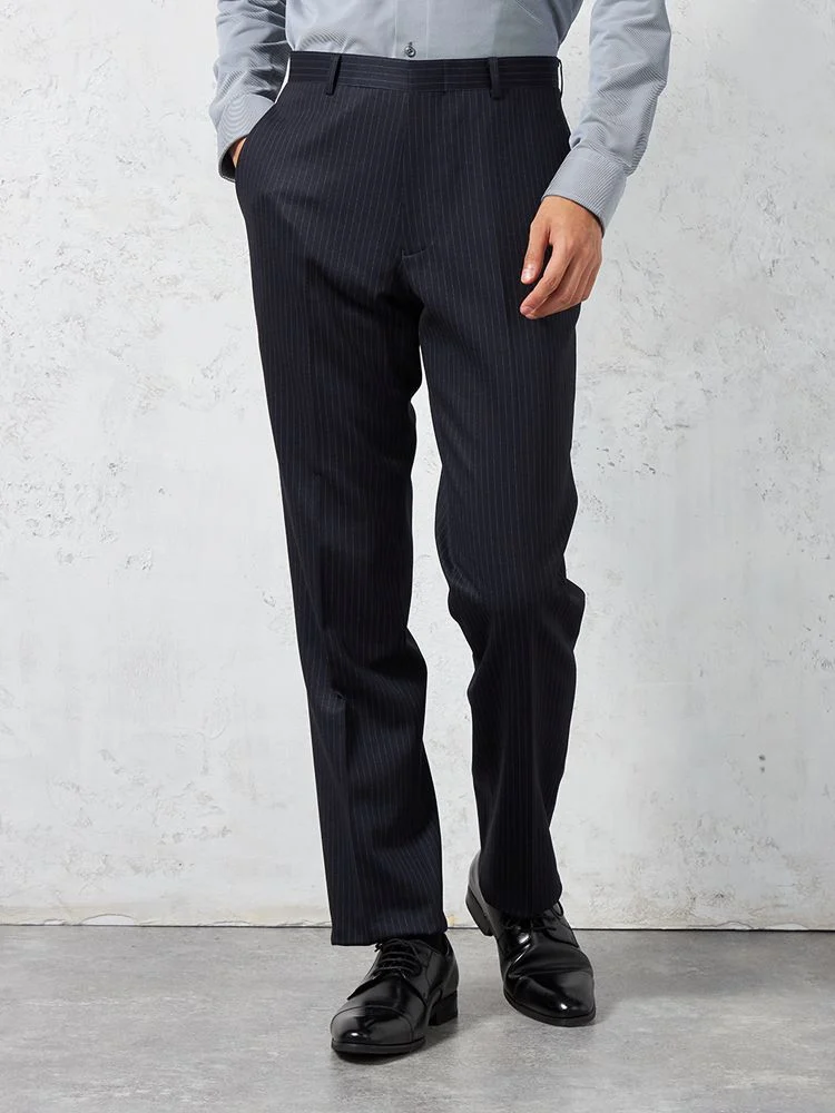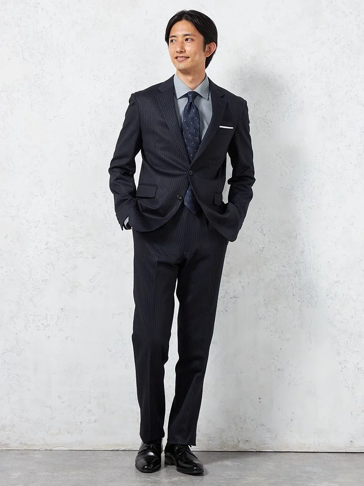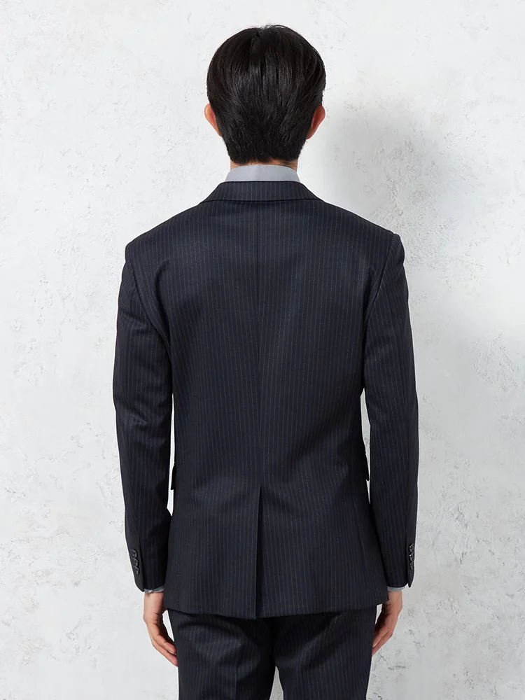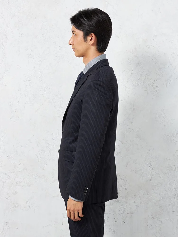 【上下ウォッシャブル】スーツ 2つボタン 抗ピリング加工 ストレッチ ストライプ ネイビー【i-Suit-アイスーツ-】秋冬