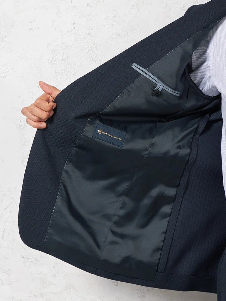 【上下ウォッシャブル】スーツ2つボタンツーパンツノータックイージーケアストライプネイビービバリーヒルズポロクラブ通年