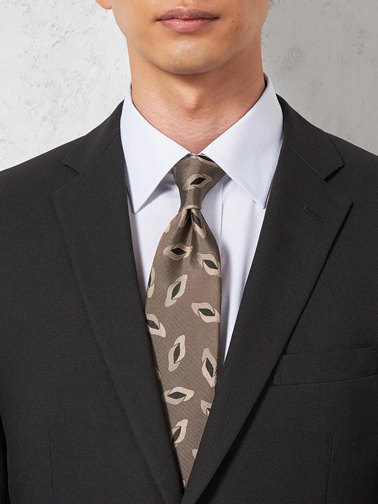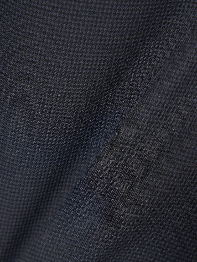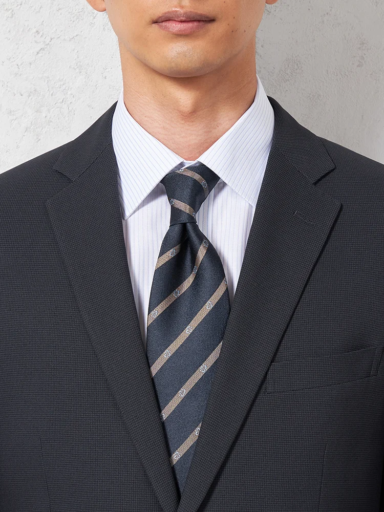 無地に見えるマイクロチェック柄は幅広い場面に着用でき、着こなしやすく便利。