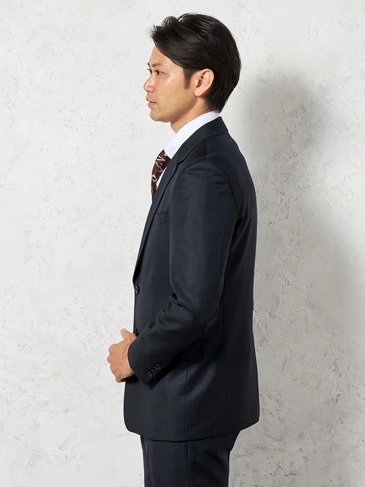 切り込みが1本のセンターベントデザインです。細身でスッキリとしたシルエットが特徴で、快適な着心地を提供します