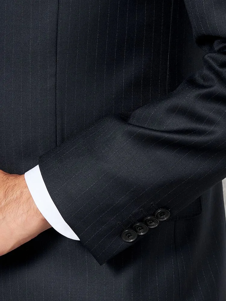 【ウール100%】スリーピーススーツ 2つボタン【REDA】イタリアインポート素材 ストライプ RUCKEN BACCHAR 秋冬(ネイビー)