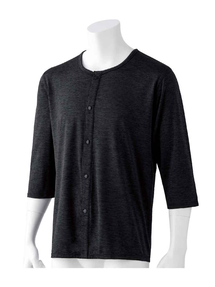 【前開き】【あったか】8分袖発熱ワンタッチシャツ/紳士用/メンズ/高齢者/シニア/秋冬/洗濯機OK/名前記入欄付/後ろ長め【CF】