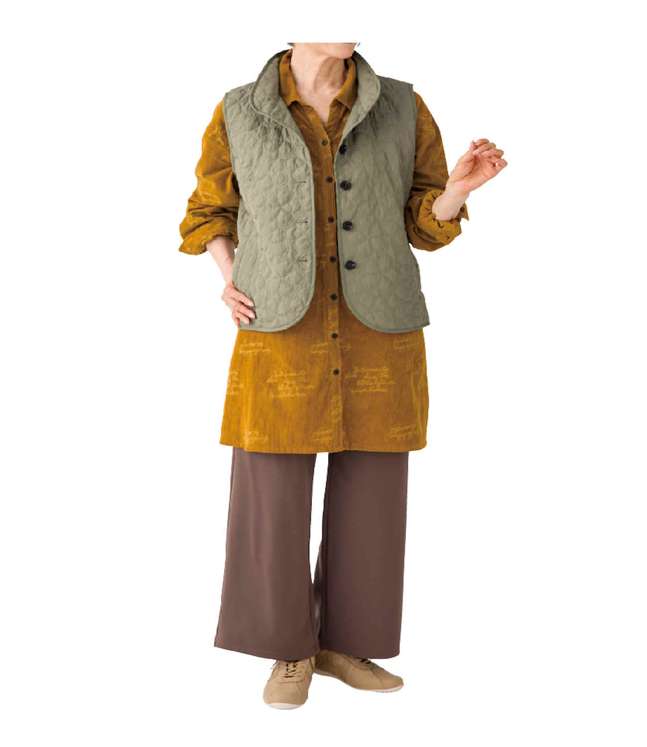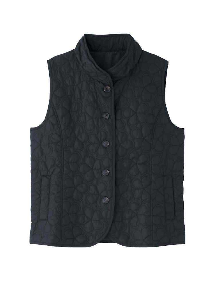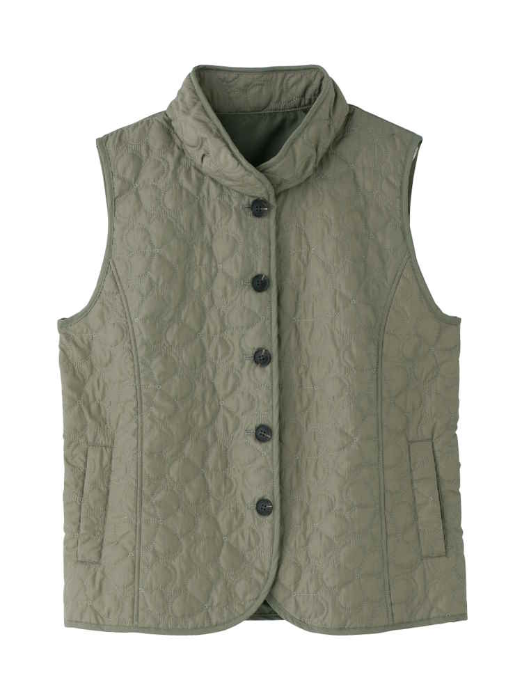 【前開き】【秋冬】薄綿花柄キルトポケ付ベスト/婦人用/レディース/シニア/高齢者/重ね着/あったか/大きめボタン/おしゃれ/お出かけ 【CF】(カーキー)