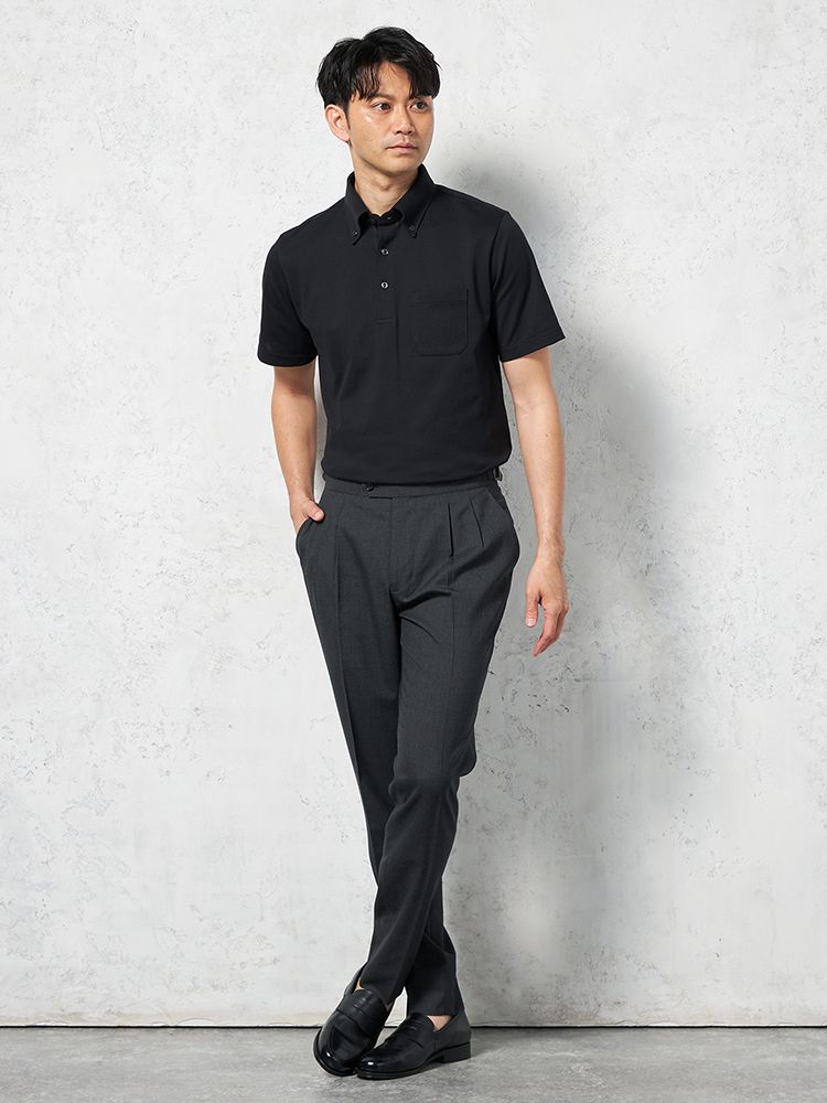 • ブラック 【吸汗速乾】 半袖ポロシャツ ボタンダウン アメリカンシーアイランドコットンドライ 無地 STOVEL & MASON 春夏 | はるやま公式通販